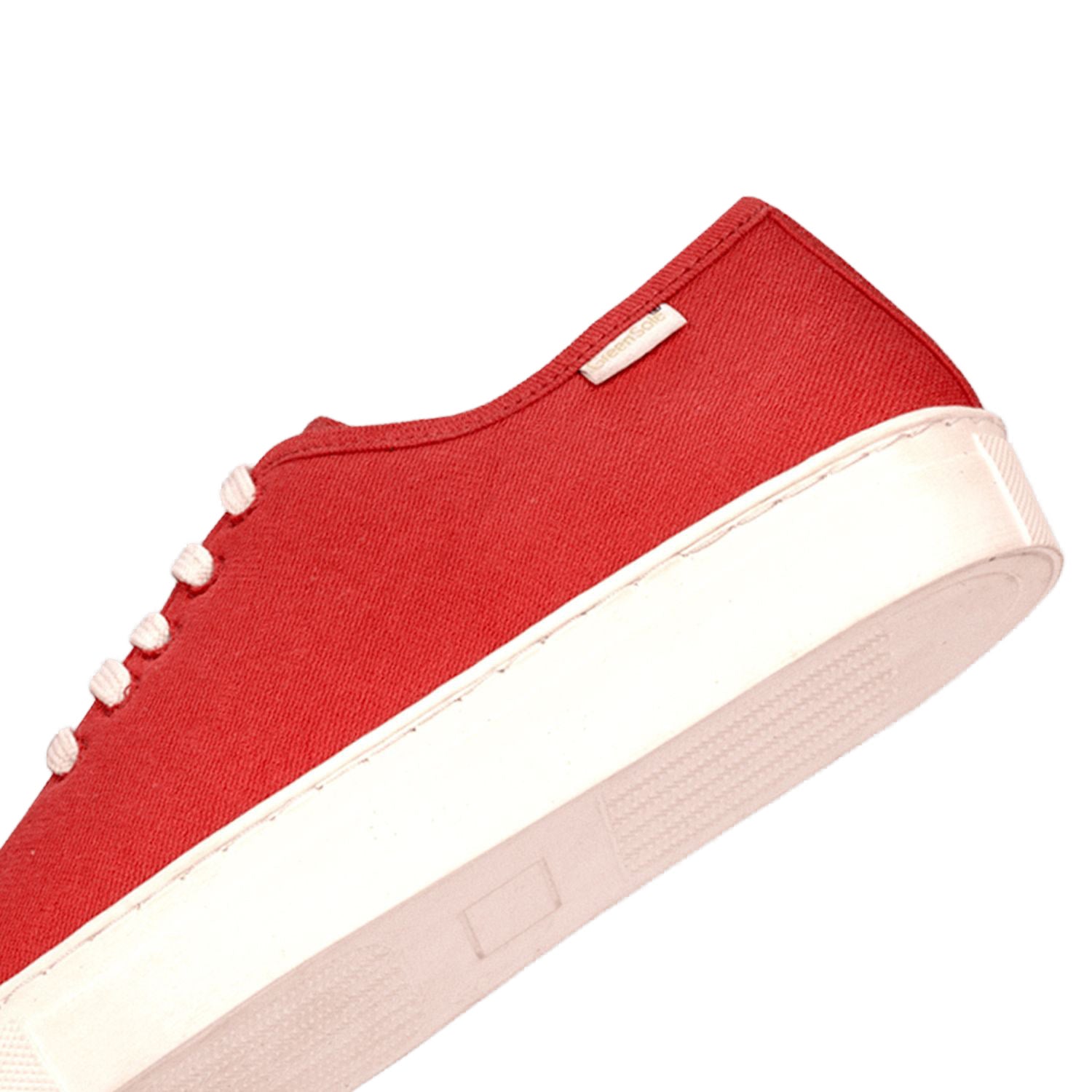 The durable outsole provides reliable traction on various surfaces, adding practical functionality to their eye-catching design. The lightweight construction minimizes foot fatigue during all-day wear, making these sneakers particularly well-suited for active lifestyles. These Minimal Red sneakers enhance your look and deliver outstanding comfort, perfect for casual jeans on weekends or more refined casual outfits.
