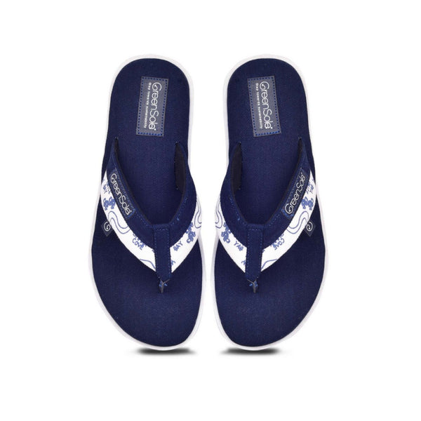 PETA approved Original Vegan Flipfllops Trendy Upper using Recycled Denim material Soft Lining using recycled PP bottle mesh Light Weight 320 gm per pair Comfortable Sole made from Recycled TPR