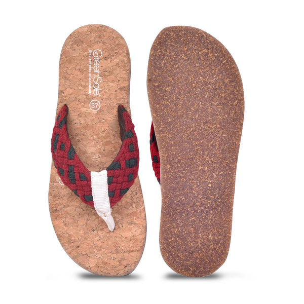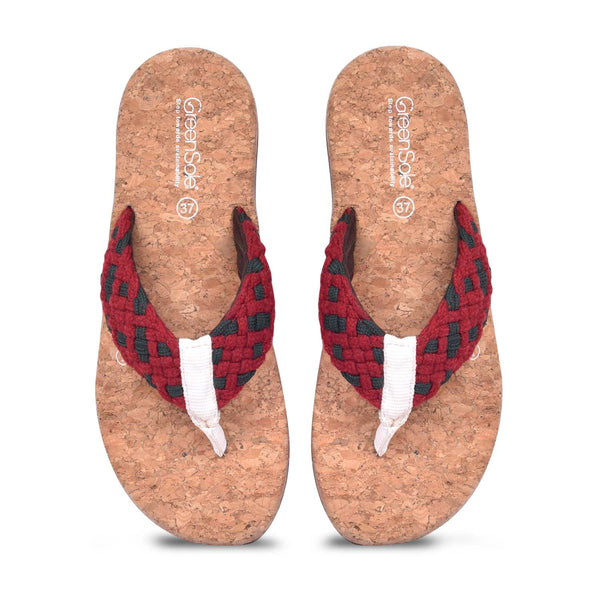 The Greensole Alfa Scarlet?�??Women's Slippers in vibrant red offer exceptional comfort with distinctive style. These red slippers for women feature a practical flip flop design that makes them easy to slip on and off, perfect for both indoor relaxation and quick trips outside.